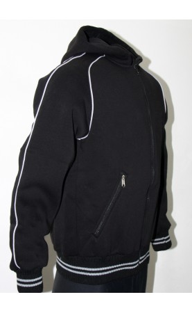 The Jacket has two side pockets with zippers and also full length zipper on the front. Embroidered logos.